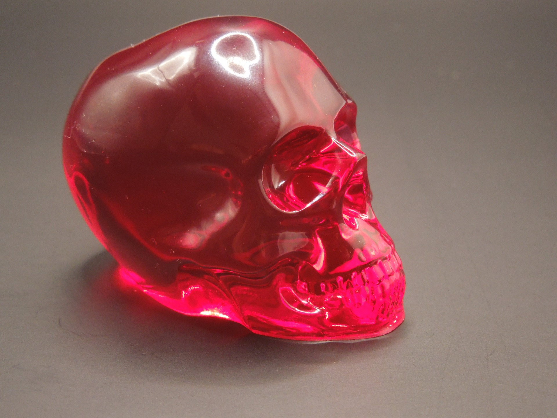 Fascinující spojení odvahy a elegance. Tato dekorativní lebka je vyrobena z vysoce kvalitní, čiré červené pryskyřice, která svou barvou a průhledností připomíná vzácný rubín. Díky své transparentnosti nádherně propouští světlo, což vytváří magické odlesky a vnitřní záři. Je to ideální doplněk pro ty, kteří hledají něco netradičního, moderního a stylového.