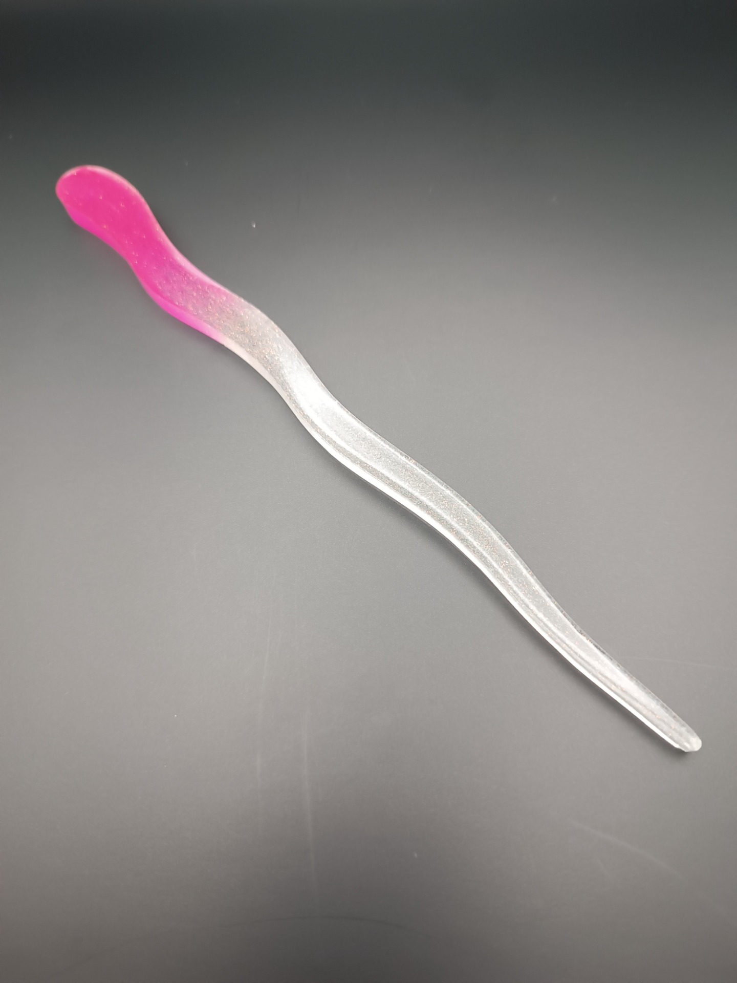 1. Magický gradient: Sytě růžová (fuchsiová) barva plynule přechází do čiré pryskyřice, což vytváří lehký a vzdušný dojem.