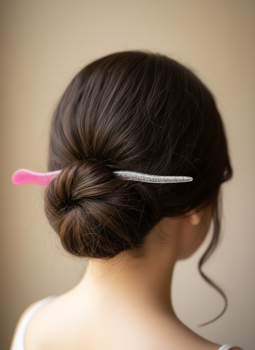 3. Elegantní vlnovka: Ergonomický, mírně zvlněný tvar (S-křivka) není jen krásný na pohled, ale zajišťuje, že jehlice ve vlasech lépe drží a nevyklouzává.