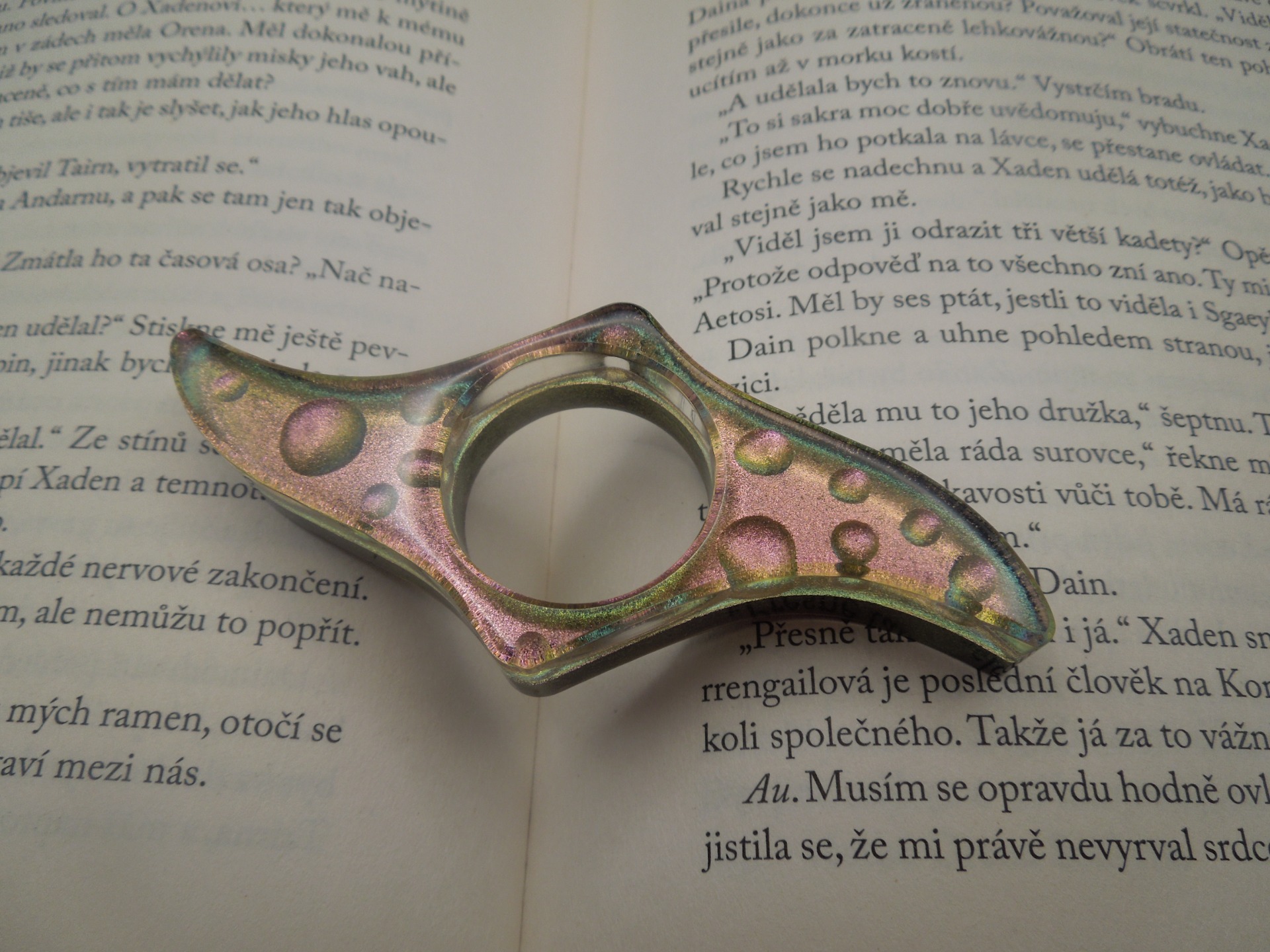 1. Pohodlí při čtení: Stačí navléknout na palec a opřít o hřbet knihy. Stránky drží perfektně roztažené, aniž byste namáhali ruku.