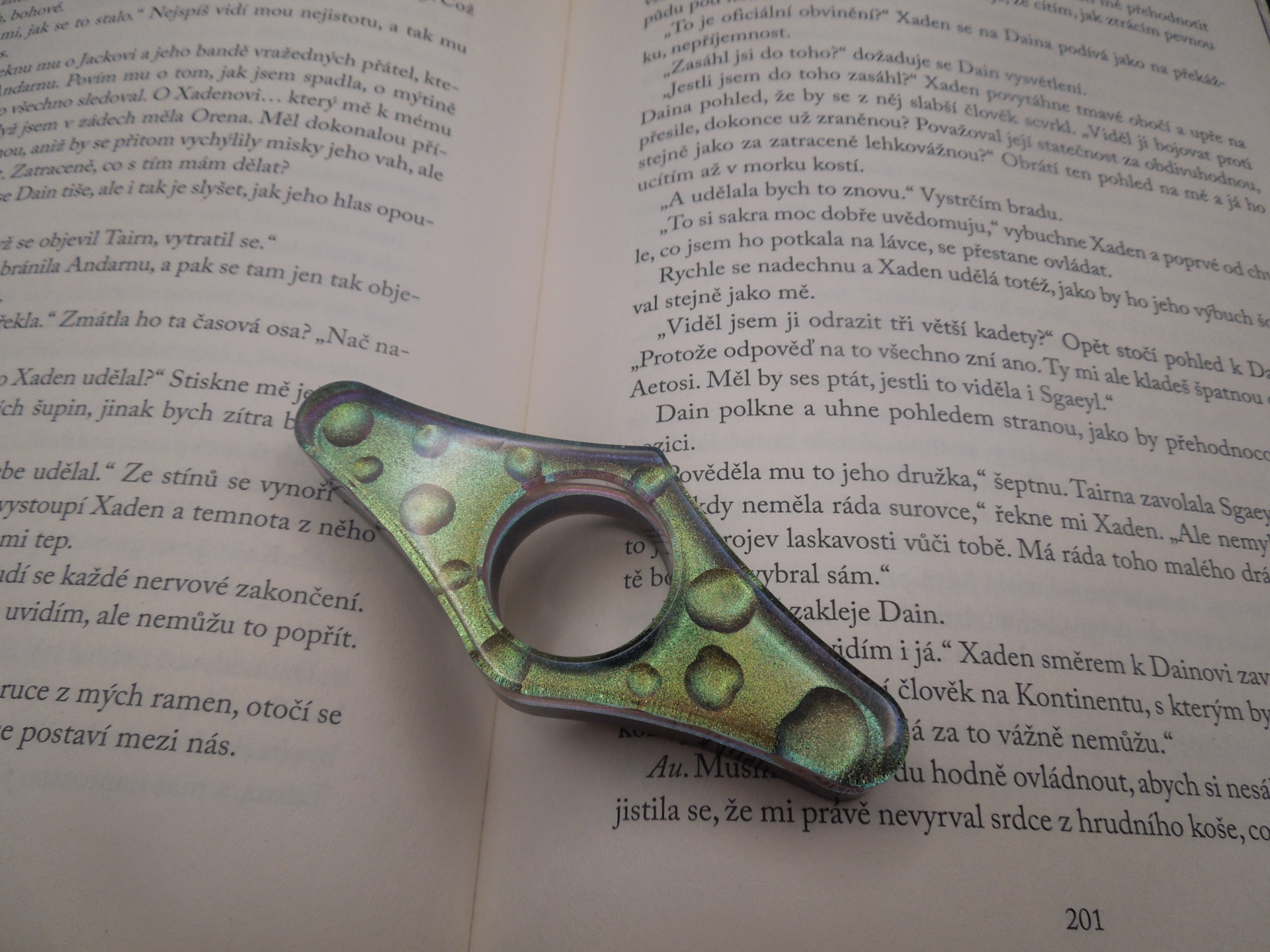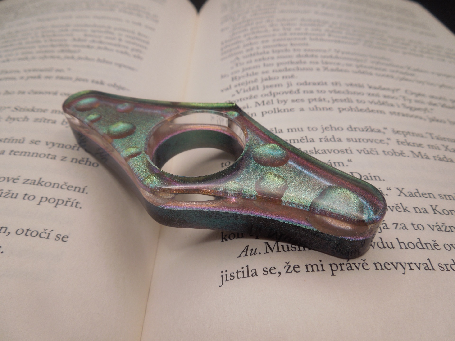 1. Pohodlí při čtení: Stačí navléknout na palec a opřít o hřbet knihy. Stránky drží perfektně roztažené, aniž byste namáhali ruku.