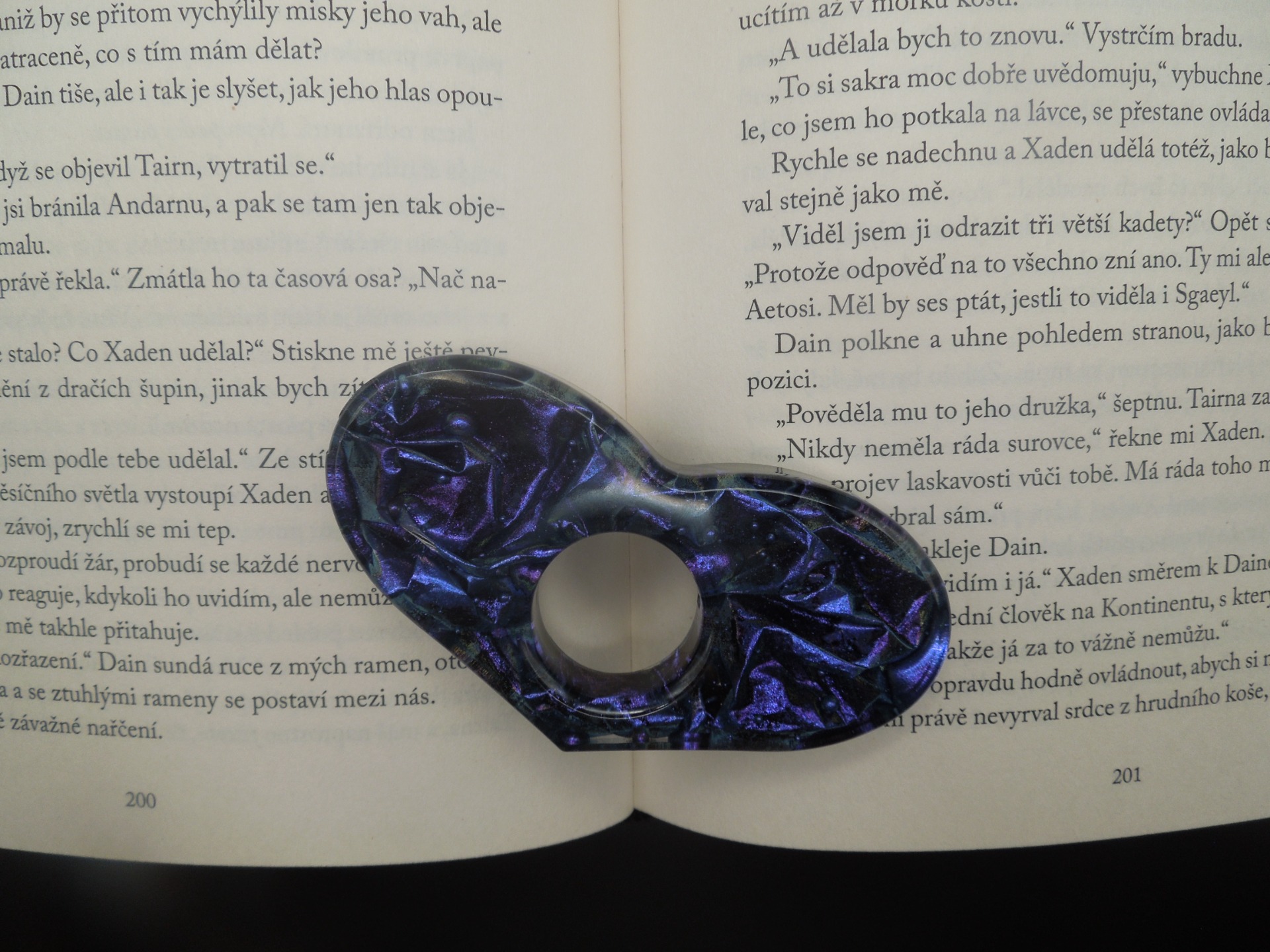 1. Pohodlí při čtení: Stačí navléknout na palec a opřít o hřbet knihy. Stránky drží perfektně roztažené, aniž byste namáhali ruku.