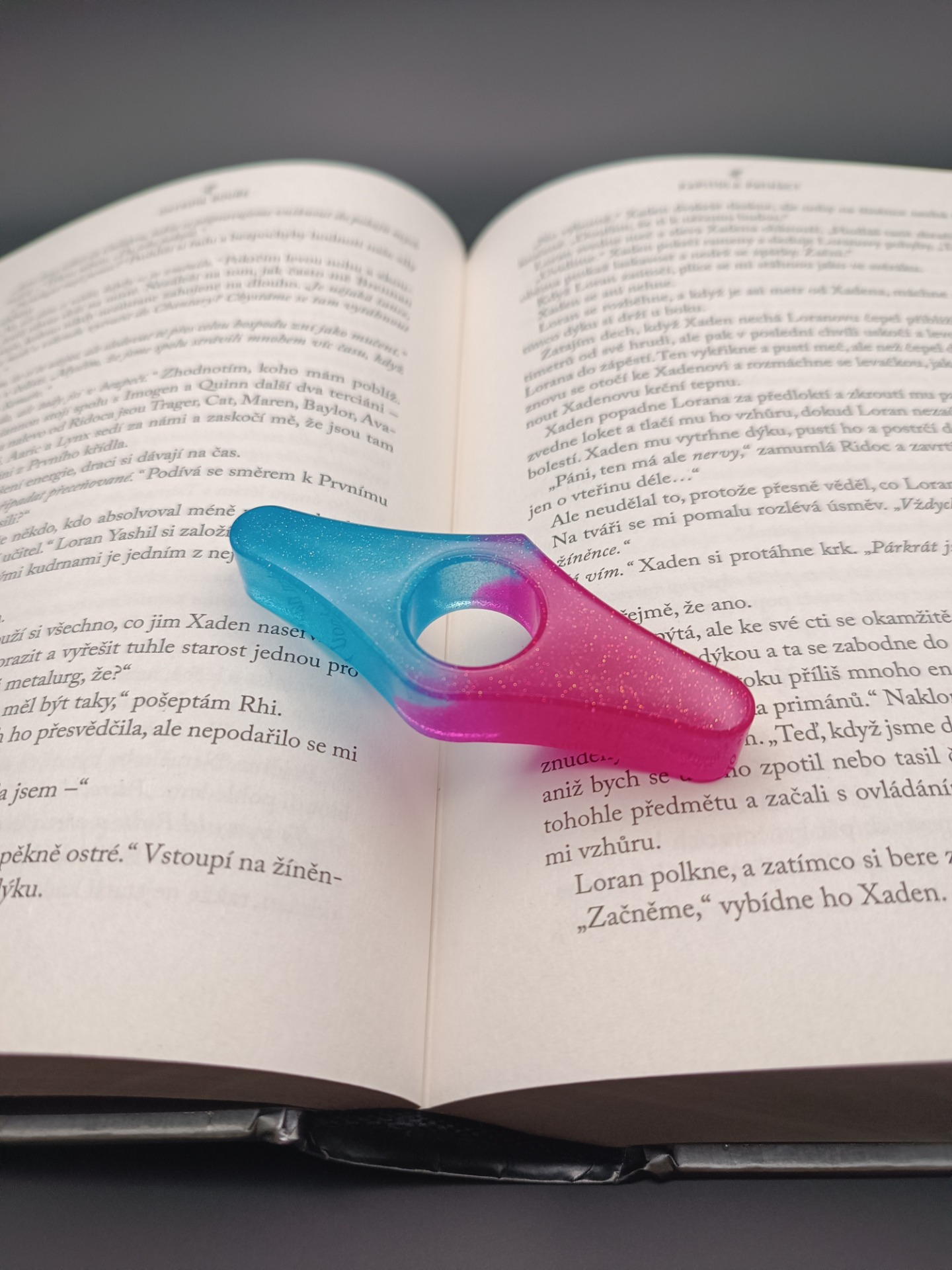 Užijte si čtení oblíbené knihy v maximálním pohodlí. Tento ručně vyráběný pomocník z pryskyřice vám umožní držet knihu otevřenou jednou rukou, aniž by se stránky samovolně zavíraly. Ideální pro čtení v posteli, v MHD nebo při pití kávy.